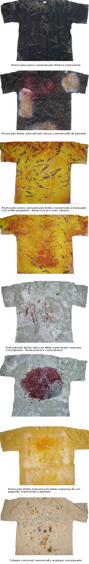 Para obter um tingimento que não fica uniforme, ou seja, não recobre toda a superfície do tecido e que deixa entrever áreas do fundo, as técnicas mudam assim como os efeitos. Aplicar resina antes ou depois de prensar a camiseta produz resultados distintos (veja as fotos).